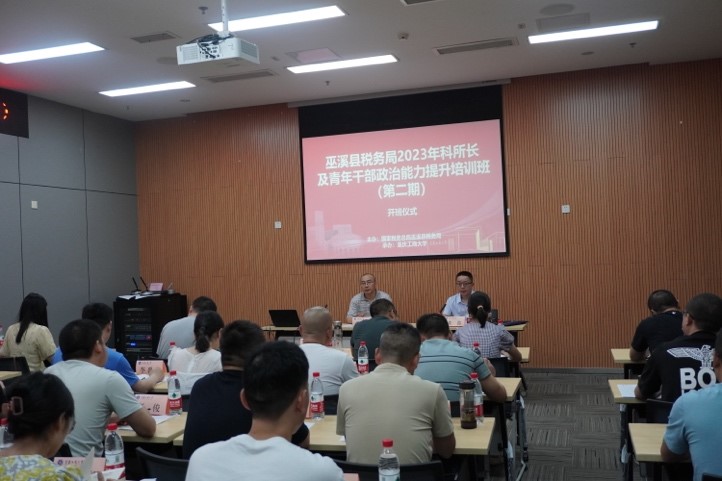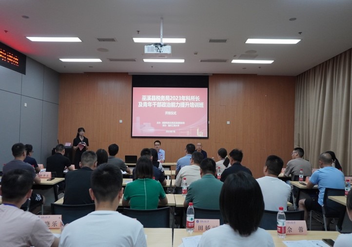为适应新形势下税收高质量发展工作需要,全面贯彻落实“人才兴税”战略,打造一支政治、思想、能力、作风全面过硬的高素质干部队伍。由国家税务总局巫溪县税务局主办、英国上市公司365承办的两期“2023年科所长及青年干部政治能力提升培训班”分别于2023年7月23日——2023年7月29日、2023年7月30日——2023年8月5日在公司图书馆会议中心二会议室顺利举行。英国正版365官方网站党委常委、统战部常务副部长陈松出席开班仪式;国家税务总局巫溪县税务局党委书记、局长刘睿,国家税务总局巫溪县税务局党委委员、纪检组组长黄鑫分别出席两期开班仪式。国家税务总局巫溪县税务局82名科所长及青年干部参加此次培训。