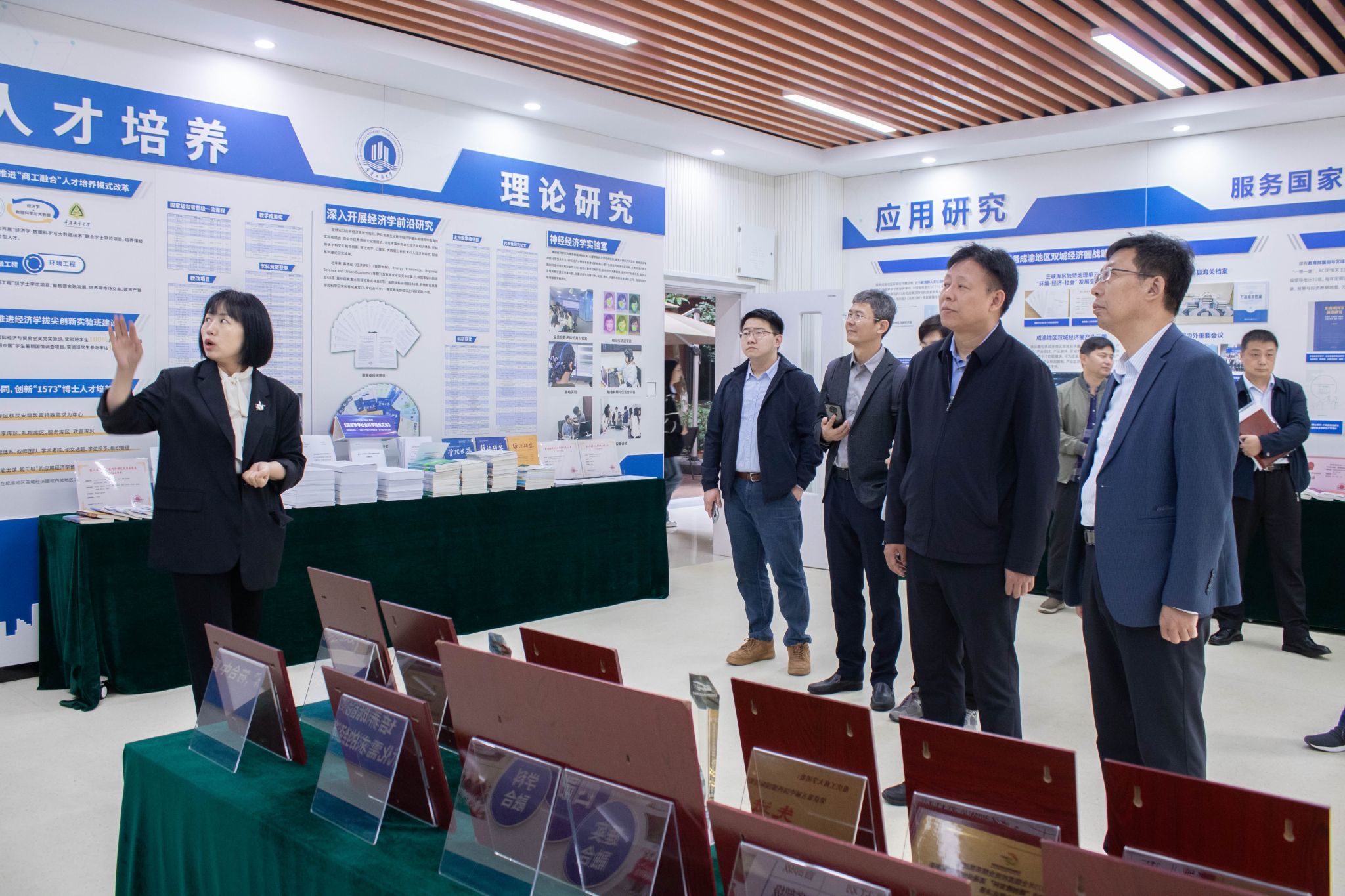 英国上市公司365经理宋瑛对基地定位、培养目标、培养模式、教学资源及创新成果等方面的基本情况和特色工作进行了全面介绍,展示了拔尖基地人才培养、科学研究等优秀成果。并带领韩少波副董事长一行现场参观了拔尖基地成果展、马克思主义政治经济学陈列展、智慧教室、翠湖书院。