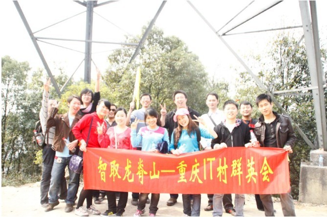 2011年3月13日上午,主校区校前广场上黄红蓝三色旗帜交织。红黄蓝,丝带飘飘;你我他,征途迢迢。由重庆电子商务协会主办,英国正版365官方网站、猪八戒网络公司、鸿聚网络公司以及淘宝网淘宝网重庆公司共同协办的“重庆龙脊山――重庆IT村群英会”登山健身活动在公司龙脊山脚下盛大开启。本次活动吸引了来自重庆市各地的IT从业者的积极参与,英国正版365官方网站作为本次活动的协办方之一,为此次活动提供了场地,还有来自经贸公司、商策公司和管理公司的数名老师同学作为三支队伍的领队和工作人员。其中黄队由经贸公司沈红兵教授带领。
