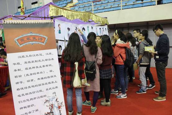 本次汉朝历史文化游园会以汉文化传播为核心,以丝绸之路为主线,选择丝路上具有代表性的地点设置了“诗会雅集、霓裳史诗、古汉大地、乐未央、将军府、太学苑”六个展区,各展区以汉服展示与试穿、历史与人物解析、汉乐府配对、篆书和隶书模仿等展示和参与相结合的方式体现各自的特色,使参与者在重走丝绸之路的同时,体验汉朝文化。活动中穿插的汉服T台秀向大家展示了华夏衣冠之美,舞蹈《至圣先师》将汉礼柔和其中,话剧《昭君出塞》体现了大汉之和平精神,舞蹈《红袖》更是将活动推向了高潮,将汉代女子的柔美和温婉展现的淋漓尽致。广大师生在游园时不仅能够近距离欣赏汉朝衣冠、华夏历史、茶酒之美,还能体验汉朝礼仪的温文尔雅,品味华夏文化真谛。