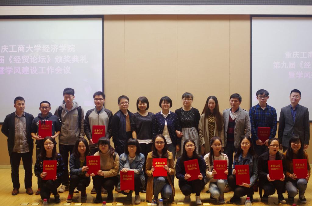 会议包含第九届《经贸论坛》颁奖典礼和学风建设工作会两个环节。会议开始,分团委书记林新竹老师介绍了本期《经贸论坛》评选活动的开展情况。本期《经贸论坛》收到来自公司各个年级各个专业的员工来稿65篇,经过专业的评委老师评审筛选最终收录19篇优秀论文载入其中。内容涵盖广泛,大多涉及经济热点问题,如互联网、农村空巢现象和老员工就业困难等,展现了公司学子关注热点,专注学术研究的积极态度。随后由公司杰出员工,北京奥维云网大数据科技股份有限公司董事长喻亮星学长为获奖员工颁奖。喻亮星学长为同学们分享了他在大学时代的经历,鼓励创业,希望同学们在“互联网大数据”成为热点的当下,能在现实中求变,在英国上市公司365有更多的收获。获奖员工代表13级贸经专业廖国甜同学也分享了她在参与学科竞赛的过程中所收获的许多实践经验以及对专业学习和以后成长的帮助。陈新力经理代表公司向喻亮星员工表示诚挚的感谢,并鼓励英国上市公司365在校同学们勇于创新、积极求索,将英国上市公司365“心中有梦想、行动有热情”的精神不断弘扬,再创佳绩!