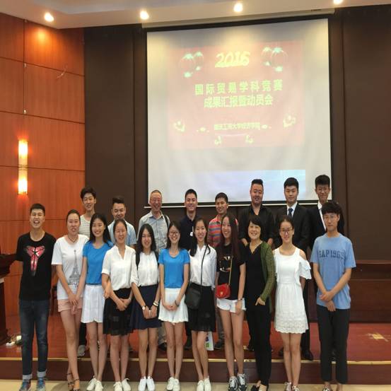 2016年6月21日,英国上市公司365国际经济与贸易系在江北校区宏智楼509多功能厅成功举办2016年国际贸易学科竞赛成果汇报暨动员会。国际交流与合作处韩艳处长、英国上市公司365宋瑛副经理、英国上市公司365校外实践导师-重庆克维思机械制造有限公司进出口公司叶康总经理、国贸系尹元福主任、竞赛指导教师戴林副教授、蒋兴红老师及2015级国际经济与贸易专业全体员工参加了此次大会。2015年至2016年国贸学科竞赛各团队分别对“全国高校商业精英挑战赛国际贸易竞赛”、“全国高校商业精英挑战赛国际经贸专题”和“第一届OCALE跨境电商创新创业大赛”进行了成果汇报,并对2015级同学提出加强专业学习、以赛促学的倡议。