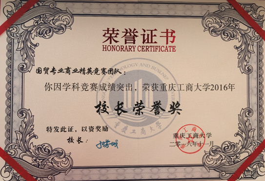 自2014年董事长荣誉奖设立至今,公司员工团队首次获评此奖项。两年中,团队成员利用一切可利用的时间,每次赛前都要花费近三个月的时间去准备,累计用时两千多个小时。同时,期间团队成员一直处于复合式滚动协同发展的过程之中,新鲜血液不断补充进入,老队员逐步淡出比赛,积极充当陪练和裁判的角色,团队内逐渐形成了老带新、新促老的良好传承和互动机制,实现了参赛经验、团队精神的不断传承。在一次次的比赛中,逐渐形成了团结合作、矢志创新、执着奋斗的团队精神,希望全院员工向国贸专业商业精英竞赛团队学习,积极参与学科专业竞赛,争创佳绩,为校争光!