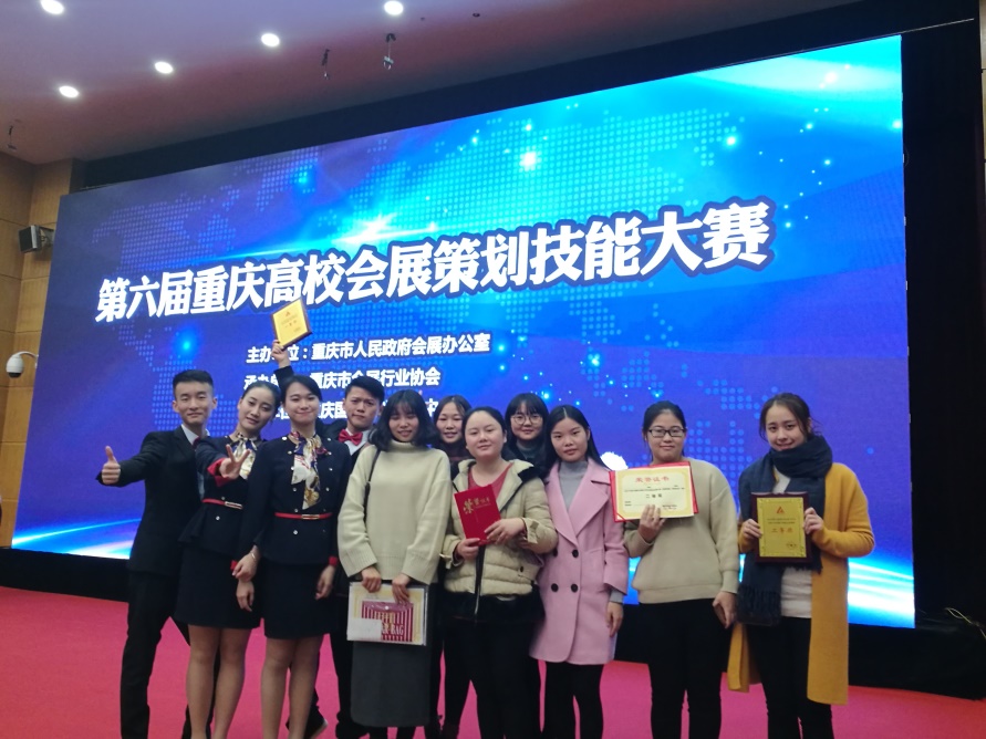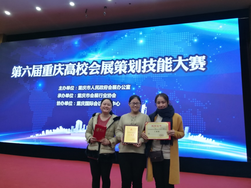 本次大赛强手林立,竞争激烈,公司员工不畏强手,顽强拼搏,发挥出了应有的水平,获得了优异成绩。孟茹月、梁卓悦、陈伟杰、姬宇航4位同学在会议服务技能比赛中配合默契,发挥出色,最终荣获决赛一等奖;王丹、张凯迪、成思怡3位同学的策划作品在比赛中获得二等奖,曾祥琴、韦晓英、彭裕芹、余惠文4位同学的策划作品荣获三等奖。此外,公司指导老师、会展专业杨军副教授也被授予2016年重庆市会展专业教育优秀教师的称号。
