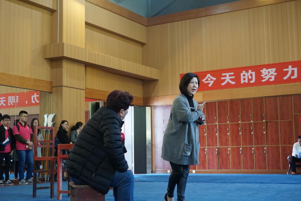 活动的最后一个环节,张队长给大家介绍了古时候的戏台构造,同时介绍戏曲演员的高亮嗓门和热闹的锣鼓主要源于古时吸引四面八方的观众。张队长带领同学们学习古时女子的步态,邀请两名同学现场教学古时男女相见的场景。张队长惟妙惟肖的演绎和同学活灵活现的模仿,引得现场掌声连连,欢笑阵阵。同学们纷纷表示收益良多,真正感受到了川剧的魅力。