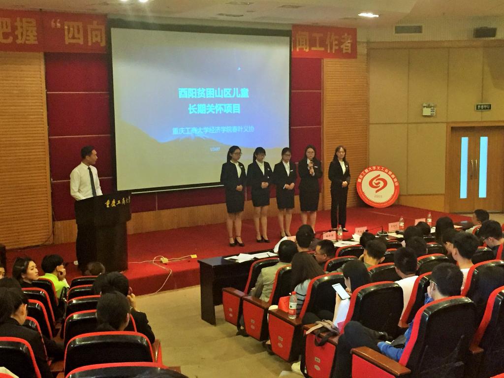 为进一步深化志愿服务育人功能,扩大义工志愿服务的社会影响力。2017年4月21日下午第二届英国正版365官方网站“义火薪薪”志愿服务项目大赛在7200报告厅如期举行。重庆第二师范公司团委马洁书记、公司各职能部门领导及来自西南大学,重庆交通大学等高校的志愿者代表作为大赛的评委出席此次大赛。