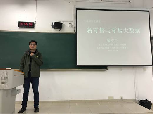 喻亮星董事长首先对“新零售”进行解读,对阿里巴巴提出“新零售”的背景进行分析,认为新零售包括了020、新物流、新供应链、新信息管理系统、大数据等要素,最关键的一点则是流量变现;目前盒马生鲜、智能家电等领域正在实施对“新零售”的探索,但是“新零售”还未真正落地。接着,喻亮星对大数据的内涵、零售行业的应用、数据获取方式等谈了自己的看法,认为大数据已成为基础资源、基础生产要素,要重视数据积累,把数据打通,最后挖掘数据价值,未来最具核心竞争力的方向是数据建模和产品化的过程;大数据正在零售行业得到全面应用,零售交易数据和消费行为数据是最关键数据。最后,喻亮星结合自身工作经历,给同学们分享了学业和职业规划的要点,以及企业对人才的需求特征,建议同学们在大学期间明确兴趣点、培养系统性思维能力和学习能力、增强社会实践能力。