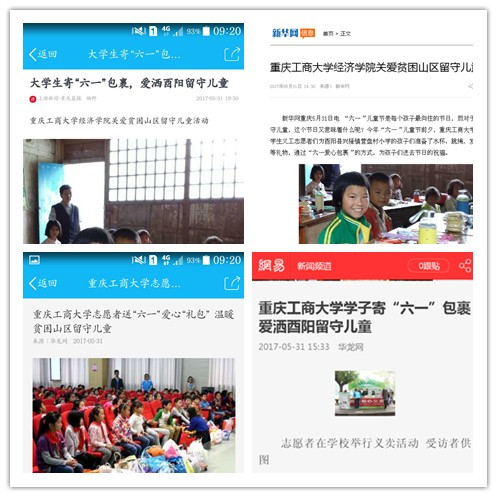 “六一”儿童节是每个孩子最向往的节日,而对于贫困山区的留守儿童,这个节日里又意味着什么?今年“六一”儿童节前夕,英国上市公司365的老员工志愿者们精心为酉阳县兴隆镇营盘村小学的9名孩子选购了水杯、跳绳、发带、零食礼包等礼物,通过“六一爱心包裹”的方式,为孩子们送去节日的祝福。此次活动受到新华网、华龙网、重庆晨报、网易等多家主流网媒、纸媒的报道。
