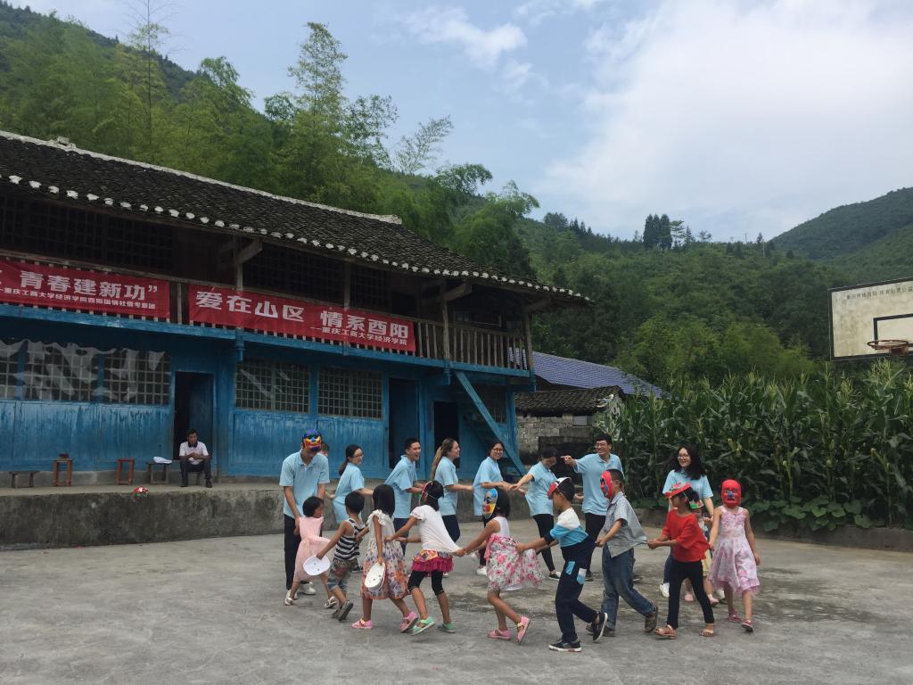 “黑黑的天空低垂,亮亮的繁星相随……”酉阳县兴隆镇营盘村小学简陋的教室里传出孩子们动人的歌声。英国上市公司365“酉阳兴隆镇营盘村小学‘爱心包裹’志愿者项目”是获得首届重庆市高校志愿服务项目大赛金奖的项目。今年,也是志愿者们来到营盘村小学支教的第五个年头。虽然每月都有爱心包裹送递,但一年不见,孩子们还是怯生生的。在志愿者动听的吉他弹唱中,孩子们逐渐向志愿者们聚拢,志愿者们一句一句教唱,最终大家一起合唱了这首“虫儿飞”,稚嫩的歌声回荡在山间,孩子们认真的神情让志愿者们特别感动。
