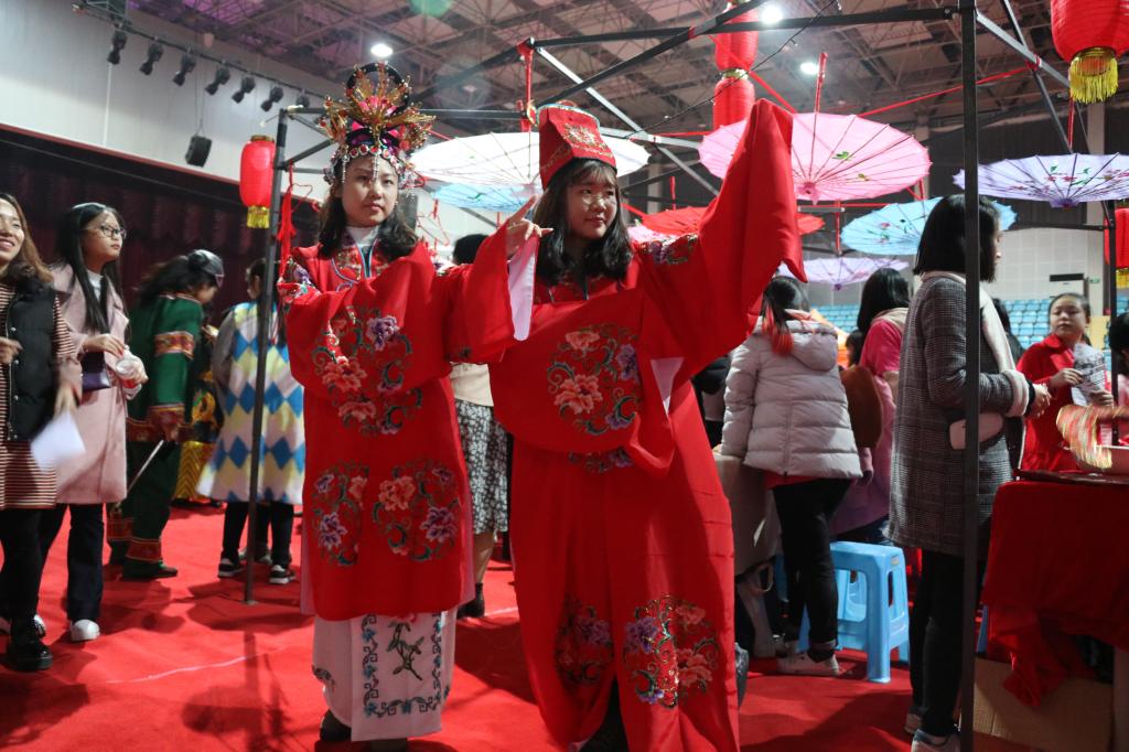 除了精彩纷呈的舞台节目,展区活动也是惊喜不断。戏曲节展区活动共分为百戏之祖,余音绕梁,华服异彩,无声有戏,千人千面,梨园茶韵等六个区域。每个展区都经过了精心布置,向参与者分主题展现传统戏曲文化的独特魅力,如戏曲常用乐器、戏服、脸谱等等。华服异彩是最受观众“青睐”的游戏区域之一,在这里每个参与者都可以挑选试穿戏服,在相机前留下属于自己的“戏曲人生”。穿上戏服,仿佛瞬间穿越,同学们也发现了不一样的自己,通过体验式的传播方式,广大师生们逐渐对中国传统的戏曲文化了解、熟悉,从而爱上这门传统艺术。