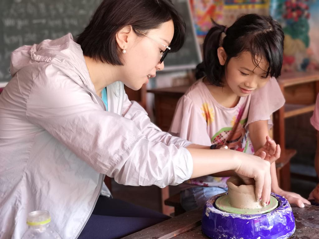 孩子总是有着天真烂漫的想法,在陶艺制作与绘画创作相结合的美育拓展课程上,小朋友们纷纷发挥自己的想象力,捏出了杯子、饭碗、小船、茶壶、金元宝等作品,并运用自己的奇思妙想为作品上色:有金灿灿的“金元宝”,形象逼真的“紫砂壶”,也有“七彩陶”。每一种颜色都表现出孩子们对这个世界的想象与期待。
