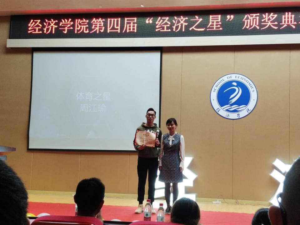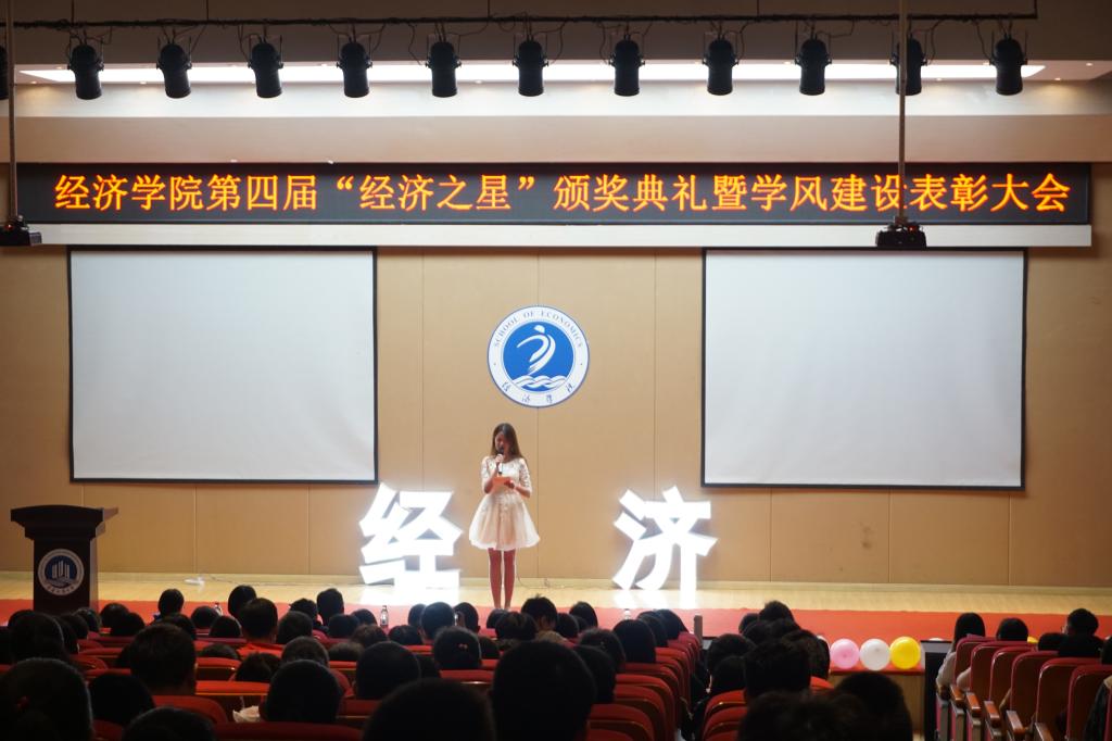 “经济之星”评选活动已经连续评选四年,在广大经济学子中起到了良好的引领示范效应。本届6位“经济之星”通过层层选拔,分别在学习、科技、实践、公益、文艺、体育六个方面拔得头筹。视频播放了每一位“经济之星”的先进事迹、获奖清单,鼓舞着在场的同学们,激励大家奋勇直追。获奖代表“体育之星”周江瑜发言:“念念不忘,必有回响。2年前,作为台下的观众,学长们的事迹让我倍受鼓舞,2年的奋斗,今天终于得偿所愿。”每一位“经济之星”都是经历了艰苦的奋斗,才迎来了最美的绽放。“梦想是注定孤独的旅行,路上少不了质疑和嘲笑,但那又怎样?哪怕遍体鳞伤也要活的漂亮。”“文艺之星”罗政隆也用动听的歌声,唱出了新一代经济学子的高昂志气。公司通过此类活动的开展,充分发挥“朋辈效益”、“榜样力量”,激励经济学子不惧困苦、坚持不懈。