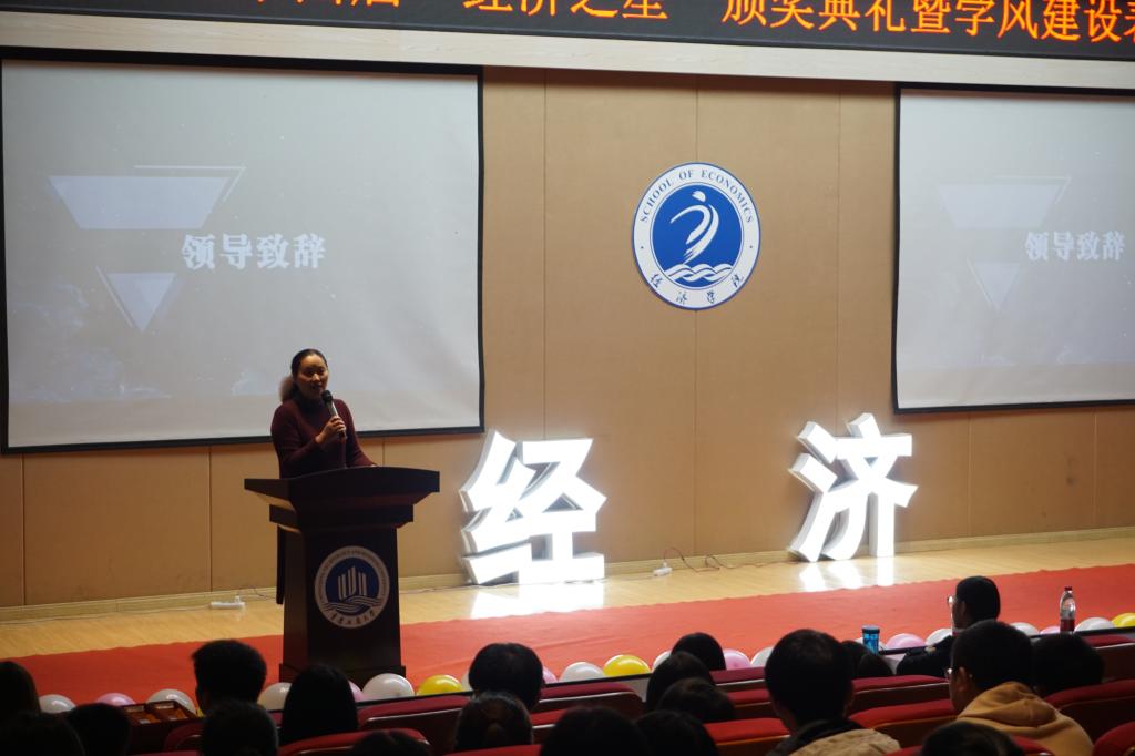 王小玲书记介绍了公司评比“经济之星”的宗旨和意义,对在各类学风建设中获奖的班级、个人表示祝贺,希望经济学子奋勇争先,向先进看齐,向优秀挑战,保持积极向上的精神风貌,做德智体美劳全面发展的综合性人才。