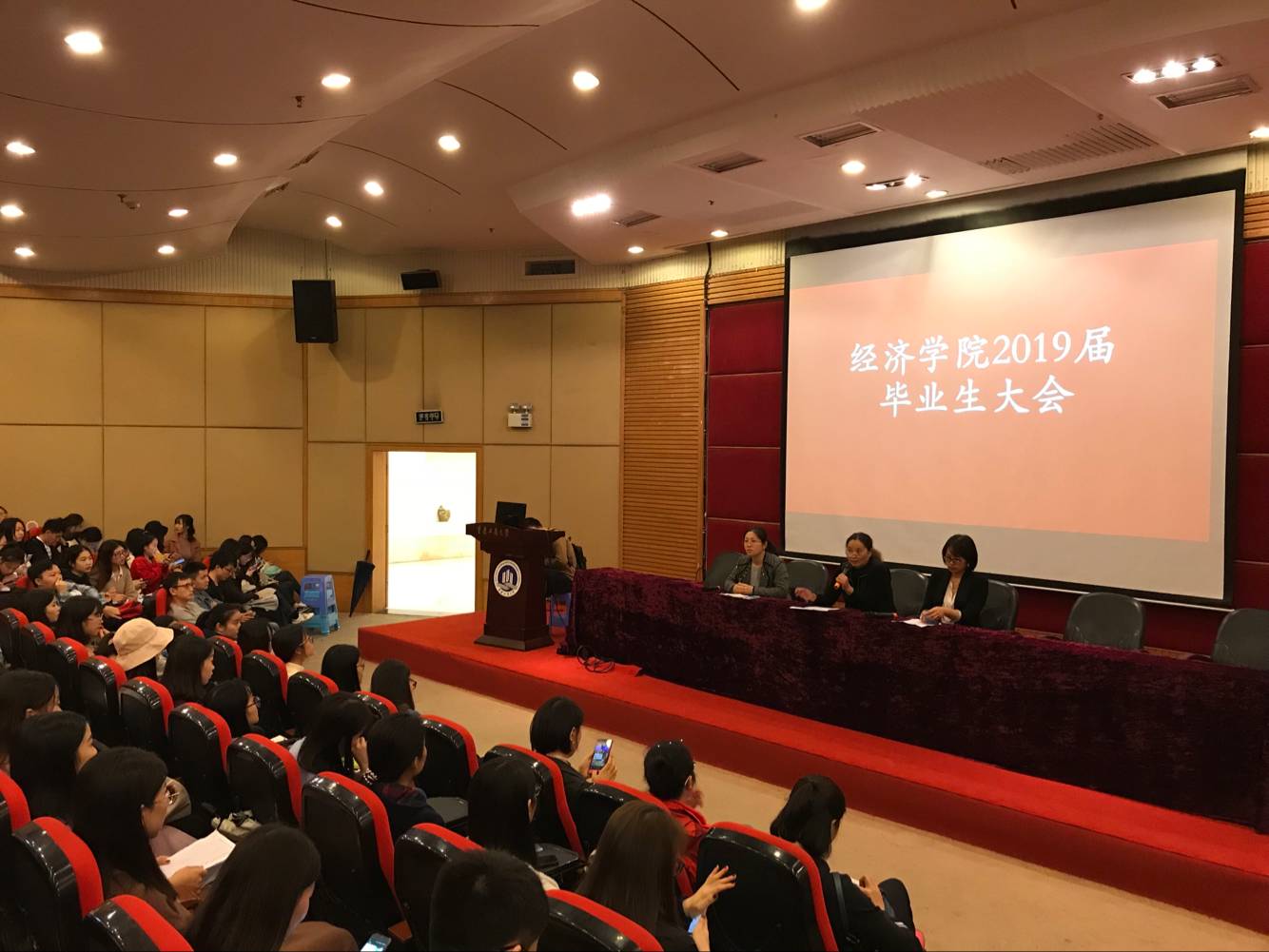 为更好地指导毕业生实习、就业、考研等事项,英国上市公司365于2018年10月19日下午13:00在博智楼7200召开了“2019届毕业生大会”,出席本次会议的有公司党委书记王小玲、副书记于频、副经理宋瑛、毕业班辅导员以及2019届全体毕业生。