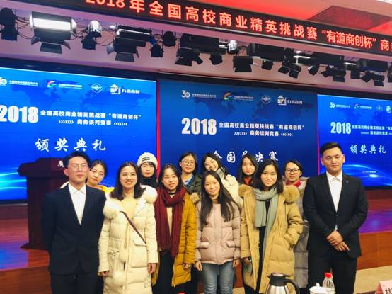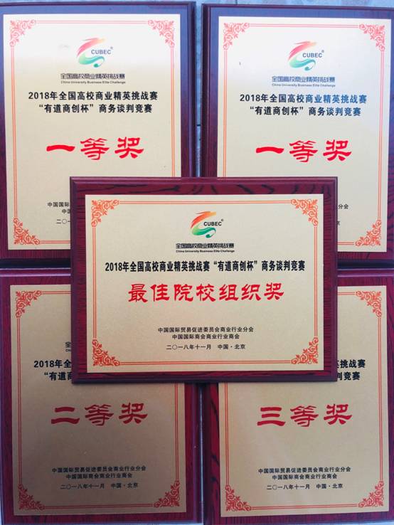 2018年11月25日,由教育部经济与贸易类专业教学指导委员会、中国国际贸易促进委员会商业行业分会、中国国际商会商业行业分会等单位主办的全国高校商业精英挑战赛“有道商创杯”商务谈判竞赛总决赛在北京落下帷幕。由公司英国上市公司365蒋兴红、戴林、冉梨、张涛等老师指导,来自英国上市公司365、商务策划公司、会计公司、管理公司的24名队员组成的4支队伍参加了此赛事。由邢宇等六名同学组成的六小龄童代表队经过激烈的小组赛,以小组前三名的成绩晋级前八强精英赛!最终,本校获得一等奖2项,二等奖1项,三等奖1项!