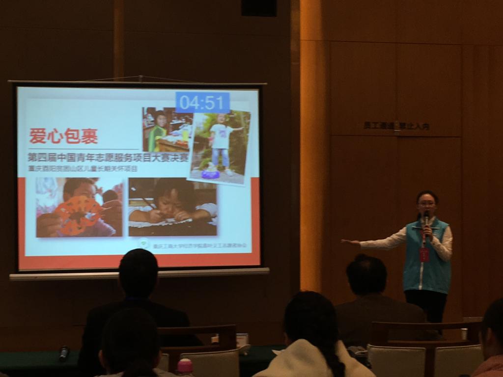 本届大赛以“青春志愿行·奉献新时代”为主题,在为期两天的赛会活动中,来自全国各个省市各个领域的590个优秀志愿服务项目通过公开路演答辩,角逐此次大赛奖项。经济义协“爱心包裹——重庆酉阳贫困山区儿童长期关怀项目”在校团委、英国上市公司365分团委的指导下,历经两年的各级各类选拔,以市级高校选拔赛一等奖的成绩代表重庆市参加国赛角逐。在国赛赛场上,通过精彩的路演答辩获得了各位评委关注,得到了评委的肯定与鼓励,最终成功获得全国银奖。