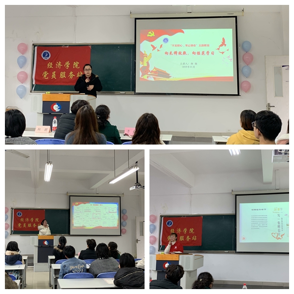活动第三项:“向先锋致敬,向模范学习”主题党课讲授。为了贯彻重庆市委教育工委《关于开展讲红色故事、讲革命精神活动的通知》精神和按照公司开展“讲红色故事、讲革命精神活动”的部署要求,郝颖老师就向“国家先锋”致敬、向佛系青年说“NO”、向身边模范学习三个方面为同学们进行了主题党课讲授。在观看习总书记为“中华人民共和国国家勋章和国家荣誉称号”获奖人授奖和其中十位杰出科学家先进事迹200秒回顾的视频后,同学们都从心底升起了对国家先锋们的敬仰之情;在向佛系青年说“NO”的板块中,同学们都认识到了奋斗对于青年的重要性;而在向身边模范学习的板块中,通过郝颖老师分享公司2019年感动校园人物——英国上市公司365义工志愿者的感人事迹和2016年、2018年英国上市公司365获得董事长荣誉奖的团队和个人的先进事迹,同时邀请到2019年董事长荣誉奖获得者杨文平学姐亲自到场分享获奖心得,同学们都燃起了努力学习、追求真知的满腔热情。