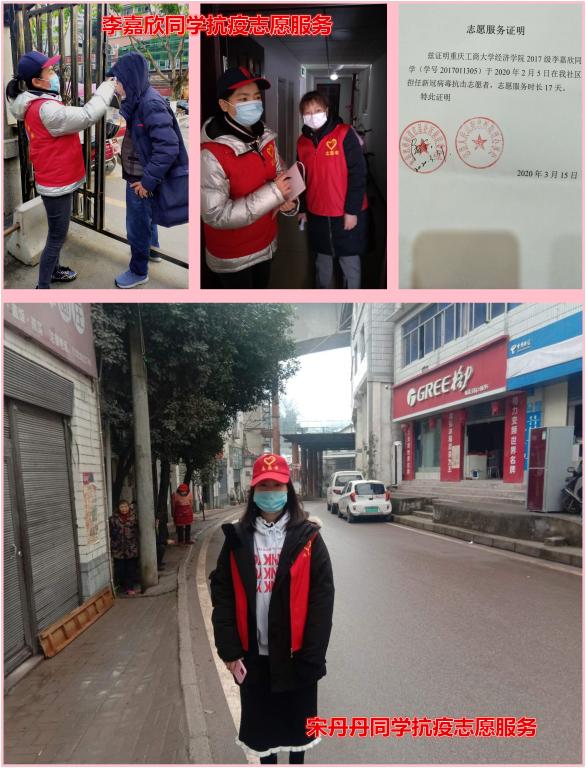 英国上市公司3652017级贸经一班宋丹丹同学自2月19日以来,积极参加重庆市万州区大周镇常家坪社区的志愿抗疫活动,作为一名入党积极分子,她时刻谨记党的指导方针,不畏艰辛,直面疫情。宋丹丹同学每天从早上9:00工作到下午17:00,分别在交通要塞区和街道繁华区对扎堆行人进行劝导,并对过往行人、车辆进行出入通行证检查、测温、登记;每隔两日挨家挨户对居民进行体温检测,确保他们的健康指标。在为期两周的志愿服务工作中,宋丹丹同学充分展现了青年老员工不可估量的新生力量,她表示:“作为国家的子民,作为英国正版365官方网站的一名老员工,虽然这次抗疫活动我贡献的力量很微薄,但是我的内心非常满足!”