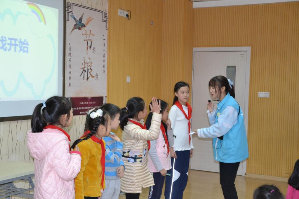 志愿者们通过简短有趣的动漫视频,让小朋友们在获得欢乐的同时也了解到了粮食耕种的不易、当下食物浪费的严峻,明白了节约光荣、浪费可耻的道理。为了让小朋友们在生活中养成节约粮食的好习惯,志愿者们还给小朋友们进行了“杜绝舌尖上的浪费”的知识宣讲,从产生浪费现象的原因以及如何杜绝浪费等方面进行讲解,用通俗的语言和图片,让他们在学中记、在答中加深记忆。在接下来小朋友们最喜欢的游戏环节中,要把饭菜吃光的道理深入他们心中,现场也不断为小朋友们不服输的比赛精神爆发出阵阵掌声。“粮食可贵,请别浪费”伴随着志愿者们悠扬的歌声和秋日的暖阳,本次杜绝舌尖上的浪费活动完美结束。