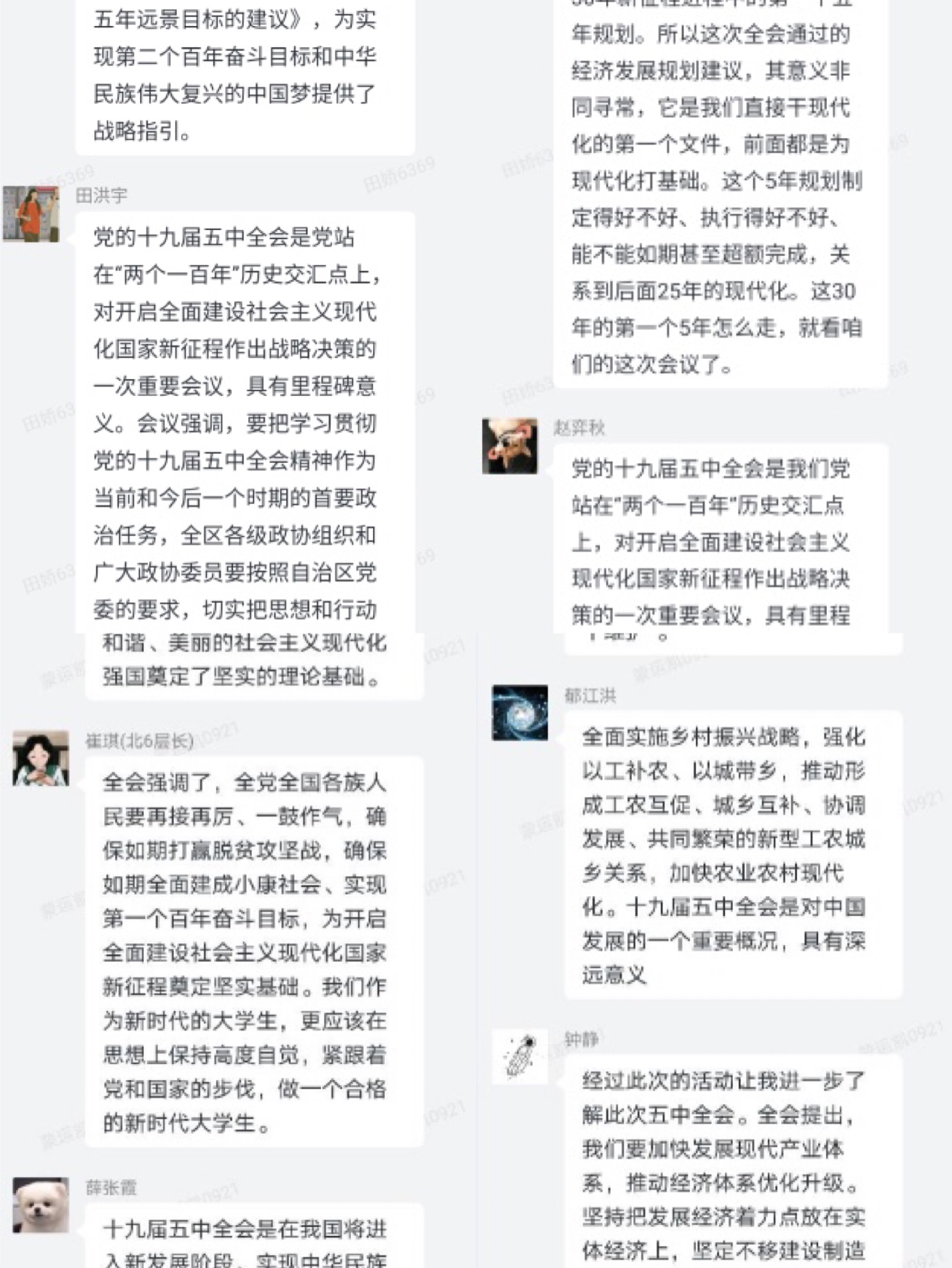 为深入学习领会党的十九届五中全会精神,切实扛起当代青年责任使命,英国上市公司365分团委发起了系列以“学习党的十九届五中全会精神”为主题的学习活动。自活动发起以来,得到全院青年学子积极相应,各团支部、员工组织认真学习研讨,掀起了学习十九届五中全会精神的新风尚。