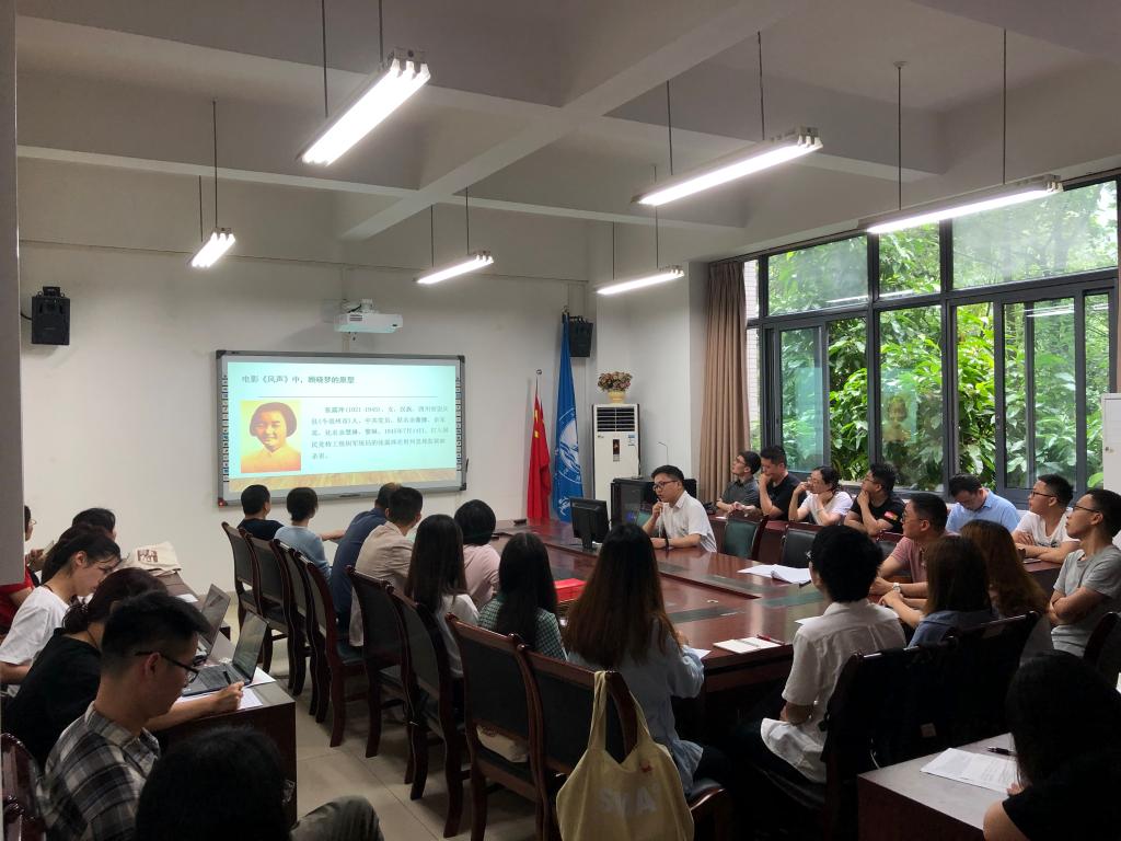 黄潇副经理以影视作品《风声》中的一段视频为引,引出电影中“老鬼”原型——中共党员张露萍,并就张露萍从少年赴陕献身革命,到受命返渝虎穴栖身,再到狱中斗争威慑敌营,到最后一代英烈肝胆照人事迹进行了回顾,讲述了她为共产主义事业奋斗的一生。并且,黄潇同志还以电视剧《潜伏》为例,讲诉了在解放战争时期,共产党员吴石深入敌后、不为艰险,为党和人民英勇奋斗的事迹。