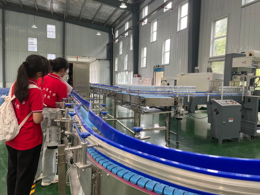 塘约沁泉水厂精细把控生产环节,严格规范流程管理。水厂通过一条长达1.7千米的管道将塘约村附近山上的泉水引进原水池,经过沉淀、石英砂和活性炭过滤、臭氧消毒杀菌等流程,最后完成桶装水与瓶装水的分装。为了让观察团成员们更直观得接触分装的过程,成员们走上生产线,参与桶装水模具塑造和矿泉水的打包装车过程,真实体验科技发展在助推企业发展中的重要力量。