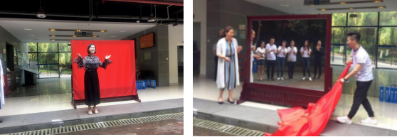 在纪念镜捐赠仪式上,王小玲书记进行了致辞,对各位员工返校表示热烈欢迎,对捐赠纪念镜表示了感谢,并向各位员工介绍了公司近年来的发展状况;林璐主任介绍了近年来公司在员工工作方面的发展及相关政策,提出了“守望相助,共创美好”的工作理念。随后王书记和员工代表崔连吉为员工捐赠的纪念镜进行揭幕,在王书记以“这面镜子将记录每一位同学从懵懂到成熟,每一位老师从青丝到两鬓斑白,更体现了大江南北的各位员工对公司的支持”的总结中结束了捐赠仪式。