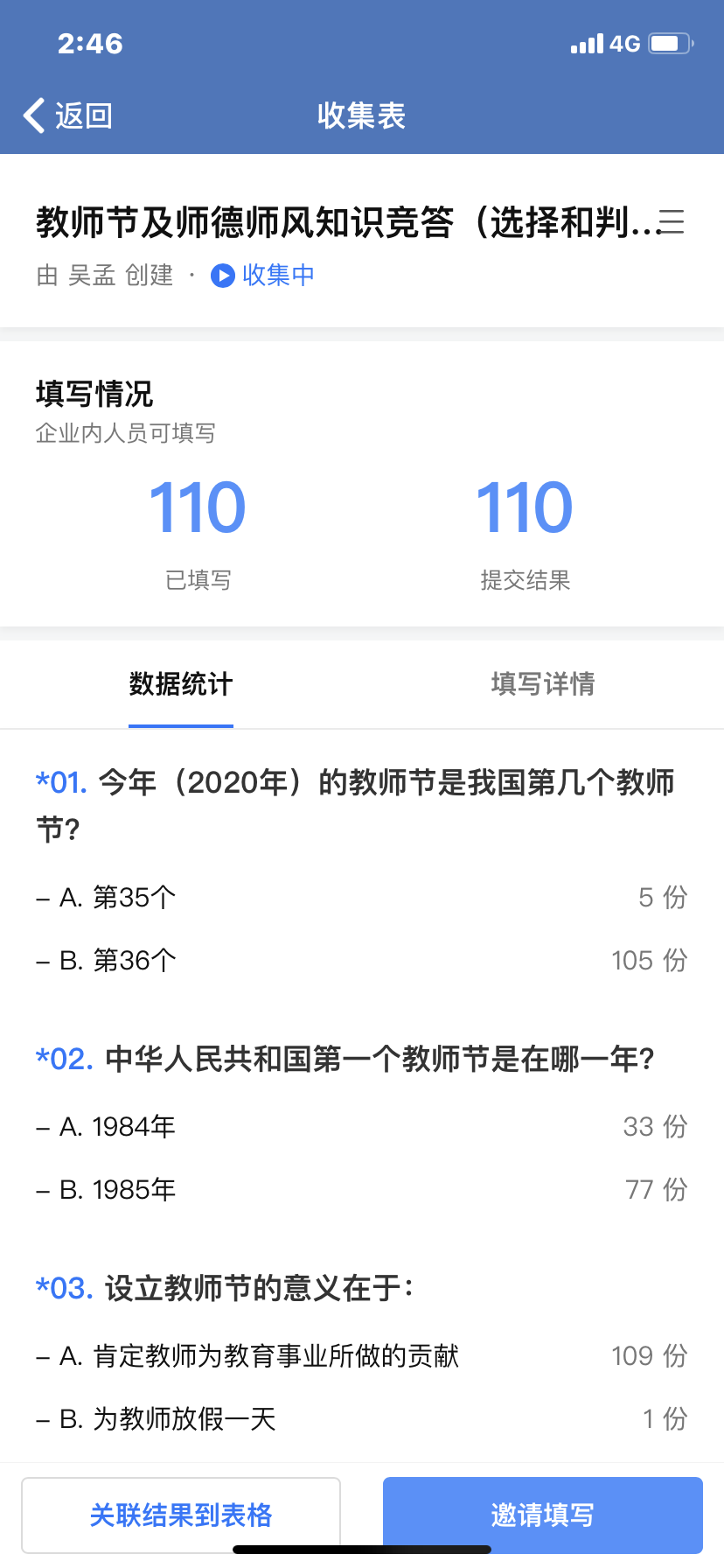 在第36个教师节来临之际,为营造节日氛围,增强广大教师的荣誉感、责任感和使命感,铭记师德师风在公司产品中的重要性,激发教师们更好地教书育人,英国上市公司365工会精心策划组织了全院教职工参与的“教师节及师德师风知识竞答活动”。为解决疫情期间尽量不大规模聚集的问题,本次知识竞答活动采取了线上答题的方式,知识竞答题包含了有关教师节的历史、教师节的意义、教师法对教师使命的规定、教师职业的本质及内在要求、习近平总书记关于师德师风的重要讲话精神,等等。通过教师节和师德师风知识的答题,老师们重温和再次感受了党和国家以及全社会给予教师的崇高荣誉和光荣使命,纷纷表示要珍惜这个荣誉,为人师表,教师育人,为国家为社会培养德智体美全面发展的合格人才。