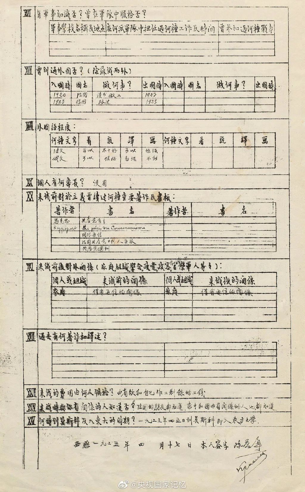 近日,中国历史研究院征集海外中共珍稀文献展,首度公开陈乔年履历表。在这份履历表中,我们可以清楚地看到,陈乔年于1902年9月2日出生在安徽怀宁,父亲是“新文化运动”领袖陈独秀。