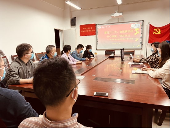 在会议上,李自维书记组织党员同志们对党的二十大报告开展学习讨论,谈认识、亮态度,推动党的二十大精神落地生根,取得实效。李自维书记强调,面对公司突发的新冠肺炎疫情,作为党员教师们要强化实干担当,在行动上紧跟紧随,要坚持用党的二十大精神为指引,把党支部“战斗堡垒”筑在疫情防控最前沿,进一步振奋精神、鼓足干劲、强化举措,以越是艰难越向前的韧劲、狭路相逢勇者胜的狠劲,以实干实绩书写贯彻落实党的二十大精神的优异答卷。支部教师党员邓雪霜表示,面对疫情我们应不惧不退,要用奉献和实干担当起时代赋予的重任,为筑牢疫情防线提供“硬核保障”。支部教师党员车四方表示,本次主题党日活动的开展为坚守在疫情防控一线的我们注入了“强心剂”,激励工商人身深怀爱国之情、砥砺强国之志、力践报国之行,以更昂扬的姿态为党的二十大献礼。