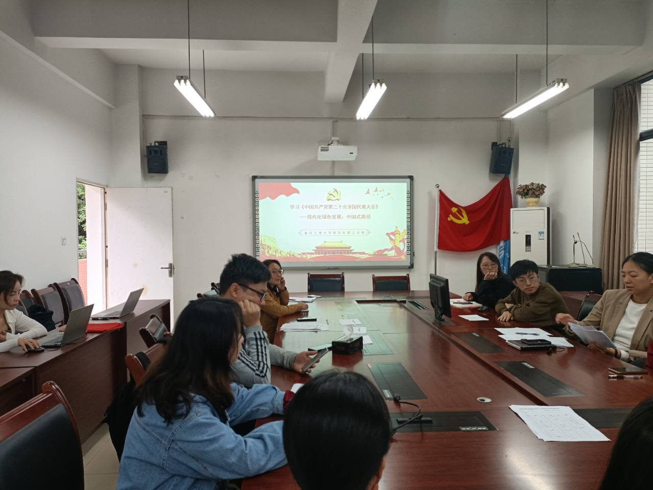 2022年10月28日下午,英国上市公司365研究生第三党支部在田家炳404开展了10月组织生活会,深入学习中国共产党第二十次全国代表大会会议关于“现代化绿色发展:中国式路径”的内容。本次会议由支部书记薛晶月主持,研究生第三党支部全体党员参加。