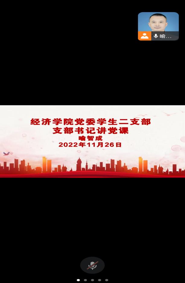 本次活动共有三项议程。活动议程一,由张弛委员作“为全面推进中华民族伟大复兴而团结奋斗”为主题的党的二十大精神宣讲,他从“一个中心任务、两个‘行’、两步走战略、三个务必、五个必由之路、六个必须坚持”六个方面进行阐释,鼓励党员同学们认真学习宣传贯彻党的二十大精神,互帮互助,共克时艰;支部书记喻智成老师以二十大金句为主题进行宣讲,希望同学们深入学习二十大精神,在自己的学习生活中,起到党员同学的先锋模范作用。活动议程二,由19级的三位党小组代表分别领学11月的组织生活学习资料。张文杰同学针对《习近平在中国共产党第二十次全国代表大会闭幕会上的重要讲话精神》展开领学,帮助同学们深刻理解二十大内容,坚定历史自信,增强历史主动,践行全心全意为人民服务的根本宗旨;白菲菲同学针对《在主动与自信中继续推进马克思主义中国化时代化》展开领学,通过讲解二十大报告的“过去五年的工作和新时代十年的伟大变革”、“开辟马克思主义中国话时代化新境界”等四个部分,鼓舞同学们怀抱梦想又脚踏实地,树立担当精神;彭洪梽同学针对《中国共产党章程的修改》展开领学,讲述修改党章是深入学习贯彻党的创新理论与推进党和国家事业发展的需要,激励同学们牢记党章,严格约束自己。活动议程三,由20级的三位党小组代表交流学习心得。同学们都提到要深入学习贯彻二十大精神,认真学习,遵守党章,在学习中不断坚定理想信念,激发不断把二十大精神转化为践行使命担当的前进动力,以实际行动扛起全面建设社会主义现代化强国、实现第二个百年奋斗目标、实现中华民族伟大复兴的时代伟业。