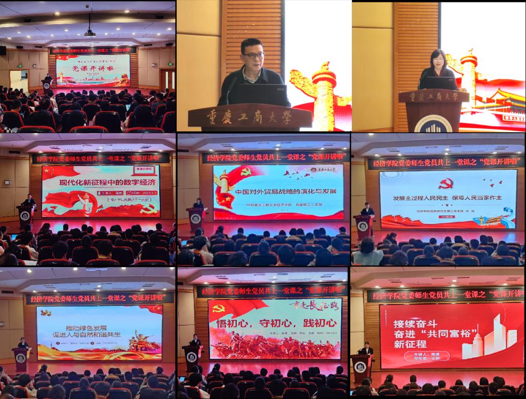 本次“党课开讲啦”活动由6名师生党员围绕党的二十大报告中关于“中国式现代化”九个方面的本质要求展开宣讲。教工一支部邹圆老师分析了数字经济对推进中国式现代化的战略意义,展示了我国数字经济发展量稳质升的成效,提出在现代化新征程下做强做优做大数字经济的关键举措。教工二支部成肖老师带领党员们回顾了新中国成立以来对外贸易战略的演化与发展,指出在当前“双循环”新发展格局下,要推进高水平对外开放,增强国内国际两个市场两种资源联动效应,提升贸易投资合作质量和水平。员工一支部高睿同学深入阐述了中国式现代化是全体人民共同富裕的现代化,并结合员工党员的使命担当,号召全体员工党员发挥模范带头作用,努力成为共同富裕的推动者。员工二支部余明同学以“悟初心,守初心,践初心”为主题,表示党员要不忘初心、牢记使命,谦虚谨慎、艰苦奋斗,敢于斗争、善于斗争,并强调了在中国式现代化新征程中,作为共产党员需时刻牢记“三个务必”。研究生一支部王堃同学结合绿色发展的主题,阐述了习近平生态文明思想及在党的二十大报告中的新论断,倡导推动人与自然和谐共生。研究生二支部李益同学聚焦“发展全过程人民民主”这一本质要求,阐释了全过程人民民主是全链条、全方位、全覆盖的民主。