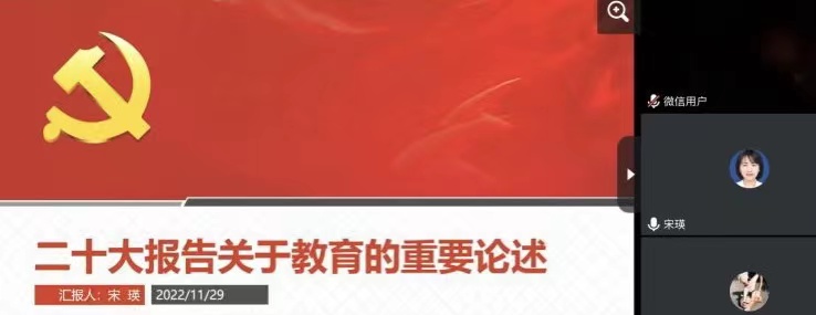 11月29日下午,英国上市公司365经理宋瑛教授为教工四支部、研究生四支部讲授党课,宣讲党的二十大精神。此次讲党课活动由教工四支部书记韩健教授主持,教工四支部、研究生四支部全体党员同志参加。