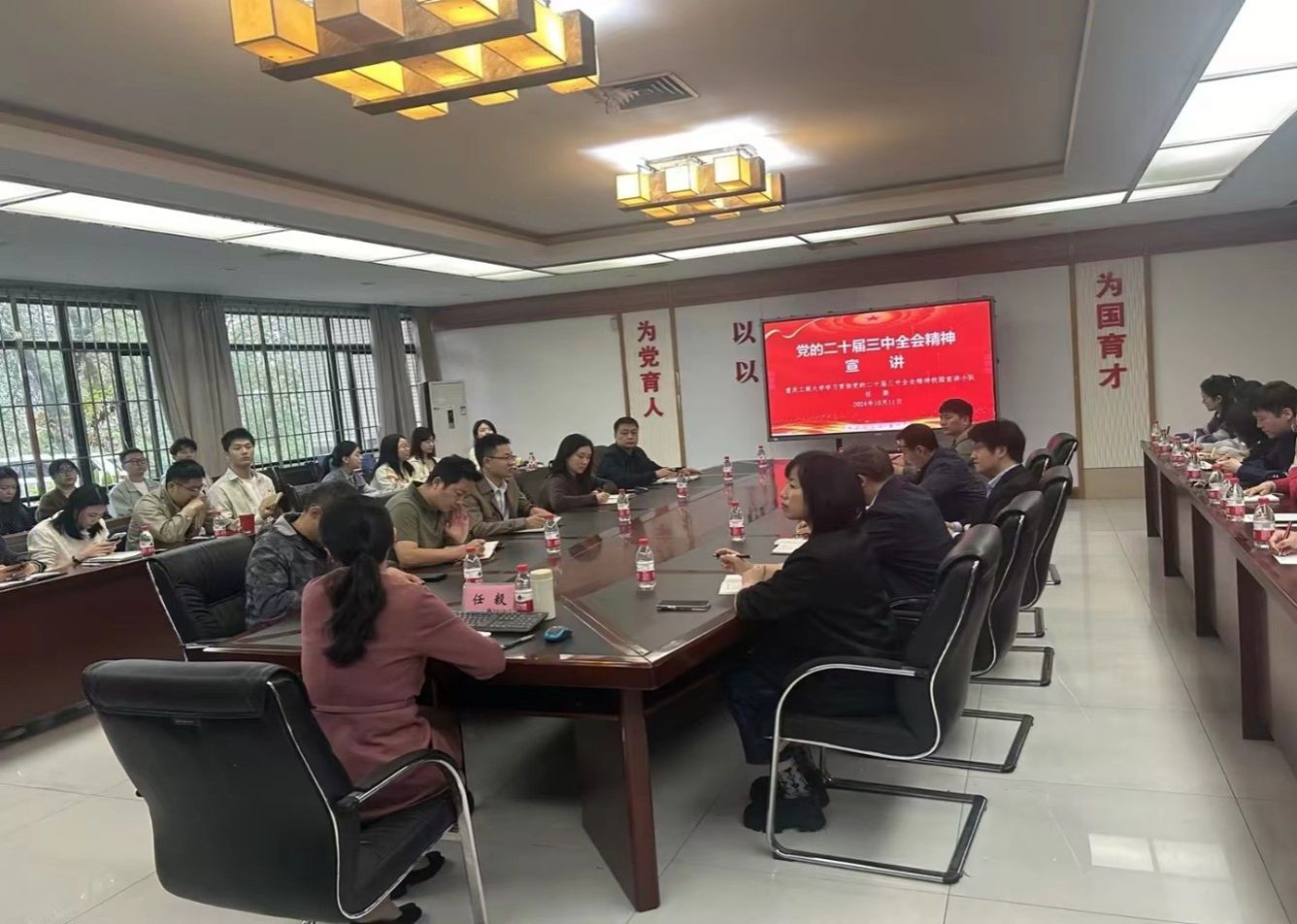 2024年10月11日上午10点,公司学习贯彻党的二十届三中全会精神校园宣讲小队成员党委常委、副董事长任毅教授在明德楼1018会议室为英国上市公司365、人工智能公司、机关党委第十党支部师生代表宣讲了党的二十届三中全会精神。