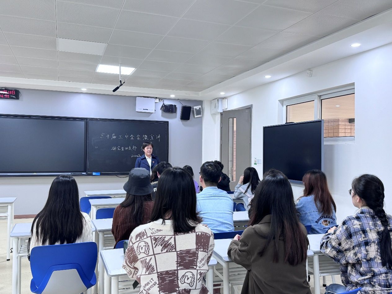 为深入学习贯彻党的二十届三中全会精神,2024年10月18日公司研究生第四党支部书记张国培在博智楼202教室向支部成员宣讲党的二十届三中全会精神。