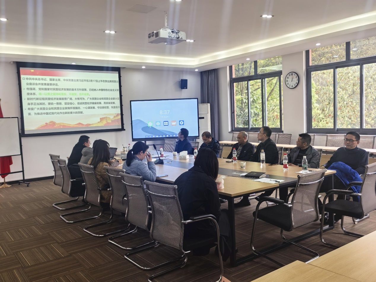 随后,与会党员教师围绕讲话精神展开了热烈研讨。大家一致认为,习近平总书记的重要讲话高屋建瓴、思想深邃,是新时代推动民营经济高质量发展的纲领性文件。高校作为人才培养和科技创新的重要阵地,要在服务民营经济发展中找准定位、发挥作用。支部党员王建业博士谈到要将讲话精神融入日常公司产品中,加强员工创新意识和实践能力的培养,引导青年学子关注国家发展、服务社会需求,主动投身新时代民营经济建设的广阔舞台。