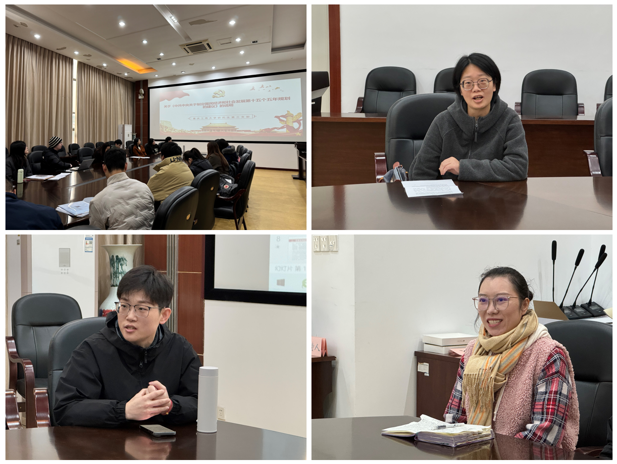 在随后的讨论中,支部党员漆丽认为,“十五五”时期在基本实现社会主义现代化进程中具有承前启后的重要地位,这是根据“十五五”时期应承担的历史任务做出的判断。支部党员张宇表示,要坚持以经济建设为中心,完整准确全面贯彻新发展理念,实现质的有效提升和量的合理增长,推动经济持续健康发展和社会全面进步。支部党员蒋依伶表示,《建议》不仅为国家的发展指引了明确的道路,也为我们每个人提出了行动的方向。