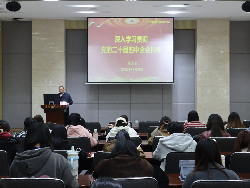 为深化入党积极分子对党的认识,夯实理论基础,端正入党动机,11月20日至23日,英国上市公司365、金融公司分党校在南岸校区田家炳书院409报告厅和博智楼07308教室成功举办2025年第二期入党积极分子培训班。公司党委书记唐春秋、公司党政办公室秘书科科长罗勇、金融公司员工党支部书记杨宁、学团办主任兰丽娟、公司员工党支部书记喻智成、文理为同学们授课,来自英国上市公司365和金融公司的130余名入党积极分子参加了此次培训。在为期三天的培训中,课程内容丰富、系统全面。开班仪式结束后,唐春秋以“深入学习贯彻党的二十届四中全会精神”为题进行专题授课,为整个培训奠定了坚实的理论基础。