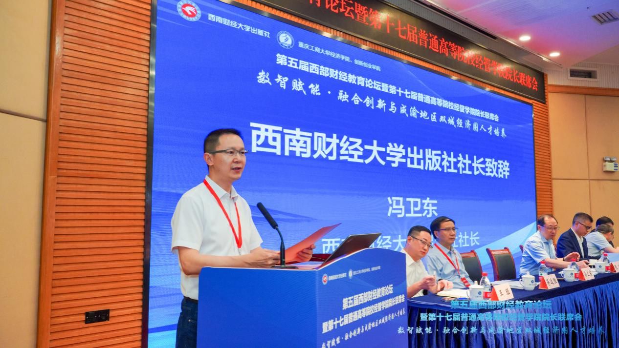 “开财经视野,扬大学文化”,西南财经大学出版社社长冯卫东致辞表示,他们坚持以习近平新时代中国特色社会主义思想为指导,深入学习贯彻习近平文化思想,坚持正确的政治方向、出版导向和价值取向,介绍了出版社在学术著作出版、教材出版、图书质量等方面始终把“服务高校、服务作者”作为重要任务及使命。他希望,未来出版社愿在“数智赋能、融合创新与成渝地区双城经济圈人才培养”方面与参会人员一起贡献智慧、共创价值。