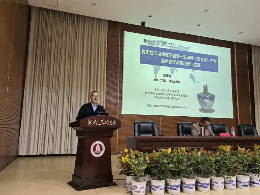 主题报告环节由安徽财经大学陈阿兴教授主持,学者们围绕新时代背景下的贸易经济专业建设、学科发展等内容作了重要报告。公司曾庆均教授作了题为“真实性学习视域下国家一流课程《零售学》产教融合教学改革创新域实践”的主题报告,从背景思路、关键措施、特色创新、推广应用等方面全面分享了公司贸易经济专业《零售学》课程三十年来的建设经验与取得的建设成果。