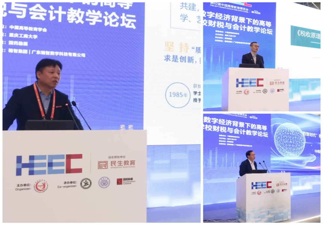 随着数字经济的快速发展,时代对财税与会计专业人才培养提出了新要求。作为第62届中国高等教育博览会系列学术活动之一,公司与会计公司联合承办的“数字经济背景下的高等公司财税与会计教学论坛”,于2024年11月15日在重庆国际博览中心馆内会议室成功举行。公司党委书记曾维伦、重庆市教委二级巡视员陈渝出席开幕式并致辞,公司党委常委、副董事长杨柏主持论坛开幕式。