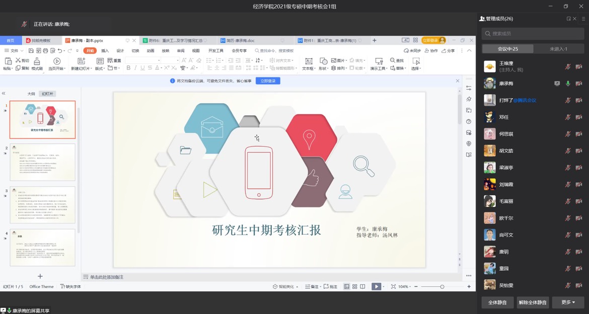 本次中期考核会分为两组进行,首先,员工就学分完成情况、课程成绩、科研成果完成情况、社会实践完成情况等方面做简要汇报;其次,考核小组老师对被考核员工进行点评与提问;再由导师讨论并审查被考核员工的课程学习及成绩是否达到考核要求、科研成果是否达到考核要求、社会实践是否完成,最后讨论确定并公布考核结论。