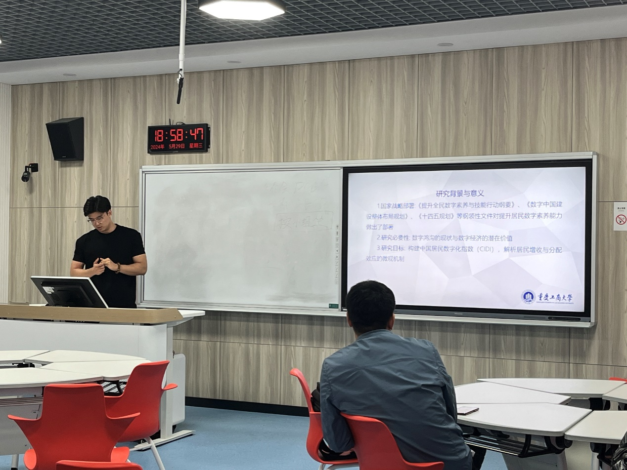 最后,西方经济学专业赵建浩同学分享了《居民数字化水平的增收与分配效应——来自中国家庭数字经济调查数据库的证据》。这篇文献通过分析中国家庭数字经济调查数据,展现了数字化水平提升对居民收入增加的正面影响,同时也探讨了数字化对收入差距带来的影响。