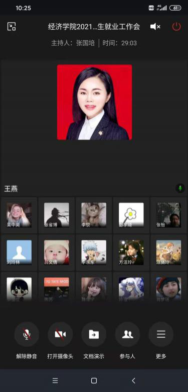 会议第一个议程,毕业生对自己目前的就业状态、就业意向做简短介绍,并明确了自己的就业方向。会议第二个议程,副书记、副经理王燕讲话。王燕书记针对当下的就业形势和班级同学的就业状态表达了三个方面的希望。一是希望研究生同学们开阔思路,正视自己。研究生处在更高的起点上,需正视自己的优势;当前就业形势严峻,需正视就业前景。二是希望研究生同学们树立正确的就业观,保持职业的连续性。职业生涯的空白是不可逆的,无法弥补,这将影响到个人未来的发展,因此毕业与就业之间的无缝衔接格外重要。三是希望研究生同学们能够恰当处理时间问题,协调好毕业论文写作与找工作两个方面的事情,抓住秋招的求职机会,做到论文、就业两手抓,两不耽误。最后王书记强调了疫情期间的安全问题,提醒同学们在找工作过程中做好个人防护。