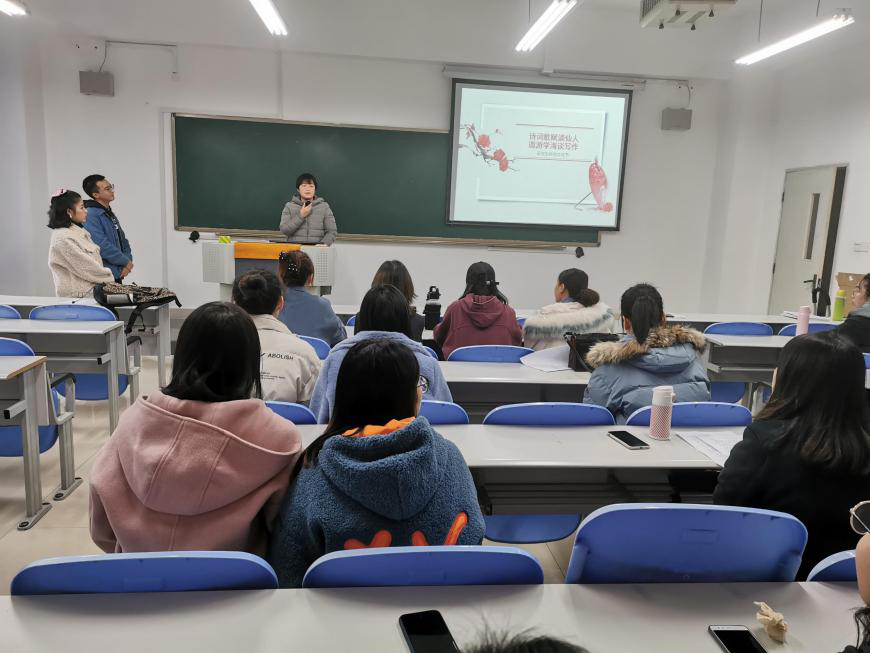 2020年12月4日公司研究生科技文化月活动之“诗词歌赋谪仙人,遨游学海谈写作”在田家炳207举行。活动有36位研究生参加,研究生辅导员张国培出席了此次活动。