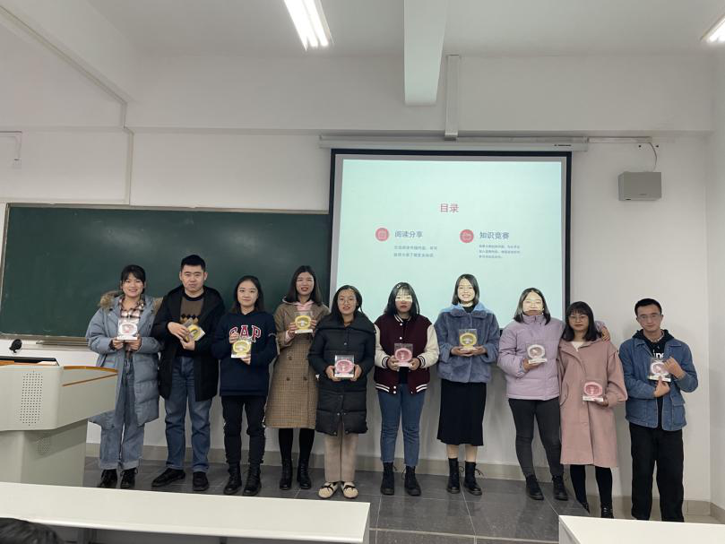 研究生辅导员张国培致词,说明科技文化月活动对于研究生交流与学习的重要意义,并预祝活动圆满成功。活动由2020级新生刘一波和方涛主持,活动分为“阅读分享交流会”和“知识竞赛”两个部分。在“阅读分享交流会”上,依次由杨竹荣、李江宇、郭柳君、黎双、张雅兰、刘一波为同学们分享了《诗意春秋伴人眠》《平凡的世界》《寒食帖》《追风筝的人》《无声告白》《毛泽东诗词鉴赏精选》等文艺作品,通过六位同学的读书分享,同学们扩大了知识面,对于人生及其困境、对于政治家的风采有了更新的认识。“知识竞赛”环节,同学们踊跃参赛,展现出深厚的知识功底,最终有十位同学一路过关斩将闯关成功。活动最后为读书分享以及竞赛获奖同学颁发了奖品和纪念品。活动圆满成功。