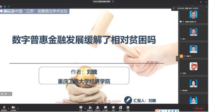 英国上市公司365青年教师刘巍博士做了《数字普惠金融发展缓解了相对贫困吗?》的学术报告。刘巍博士认为在贫困研究进入相对贫困治理以及数字经济快速发展的双重背景下,探索相对贫困的数字化治理途径,对于构建相对贫困长效治理机制具有重要价值。刘巍博士基于中国家庭追踪调查2014—2018年的数据,将相对贫困区分为主观和客观两种类型,并运用条件混合过程(CMP)等研究方法,分析了数字普惠金融对居民相对贫困的影响。刘巍博士研究发现数字普惠金融指数每增加1%,客观相对贫困的发生概率下降2.12%,主观相对贫困的发生概率下降0.96%。刘巍博士认为数字普惠金融发展有效缓解了城乡居民的相对贫困状况,其作用机制在于数字普惠金融通过降低信贷成本、积累人力资本和社会资本缓解客观相对贫困,通过积累人力资本和社会资本缓解主观相对贫困。