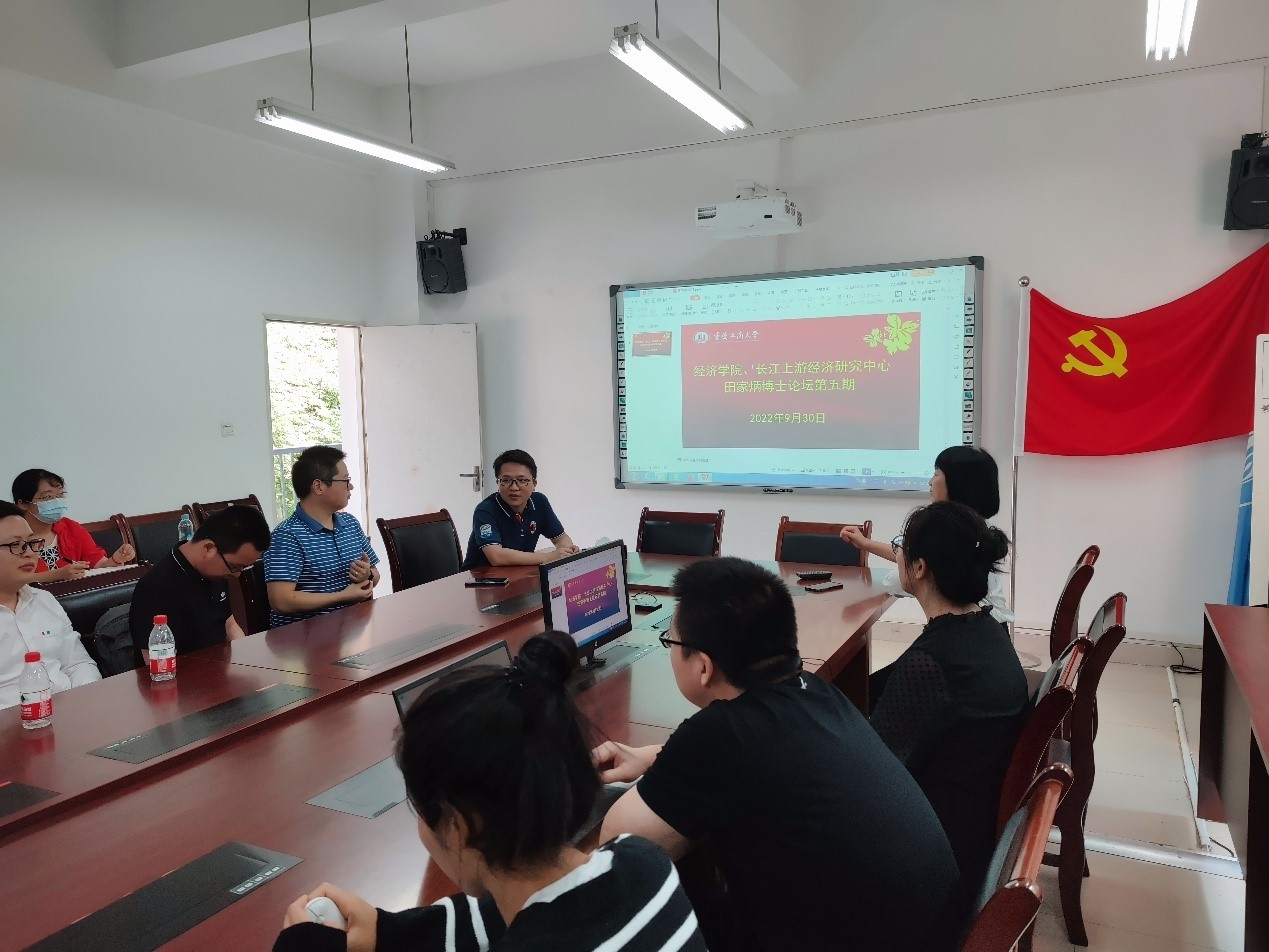2022年9月30日上午,英国上市公司365、长江上游经济研究中心于田家炳404会议室举办了第五次“田家炳博士论坛”,英国上市公司365副书记副经理宋瑛教授、副经理黄潇教授、青年博士教师和长江上游经济研究中心的博士研究生参加了本次论坛。青年教师王建业博士、雷俐博士分别进行了汇报发言。