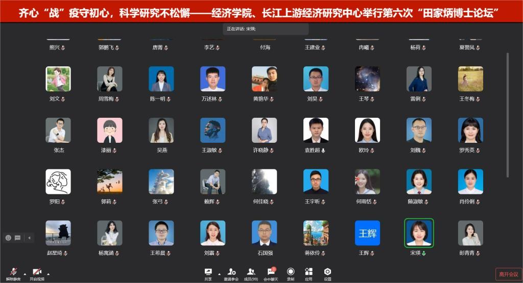 2022年10月14日上午,英国上市公司365、长江上游经济研究中心通过企业微信线上会议如期举办了第六次“田家炳博士论坛”,英国上市公司365经理宋瑛教授、近100名青年博士教师和长江上游经济研究中心的博士研究生参加了本次论坛。